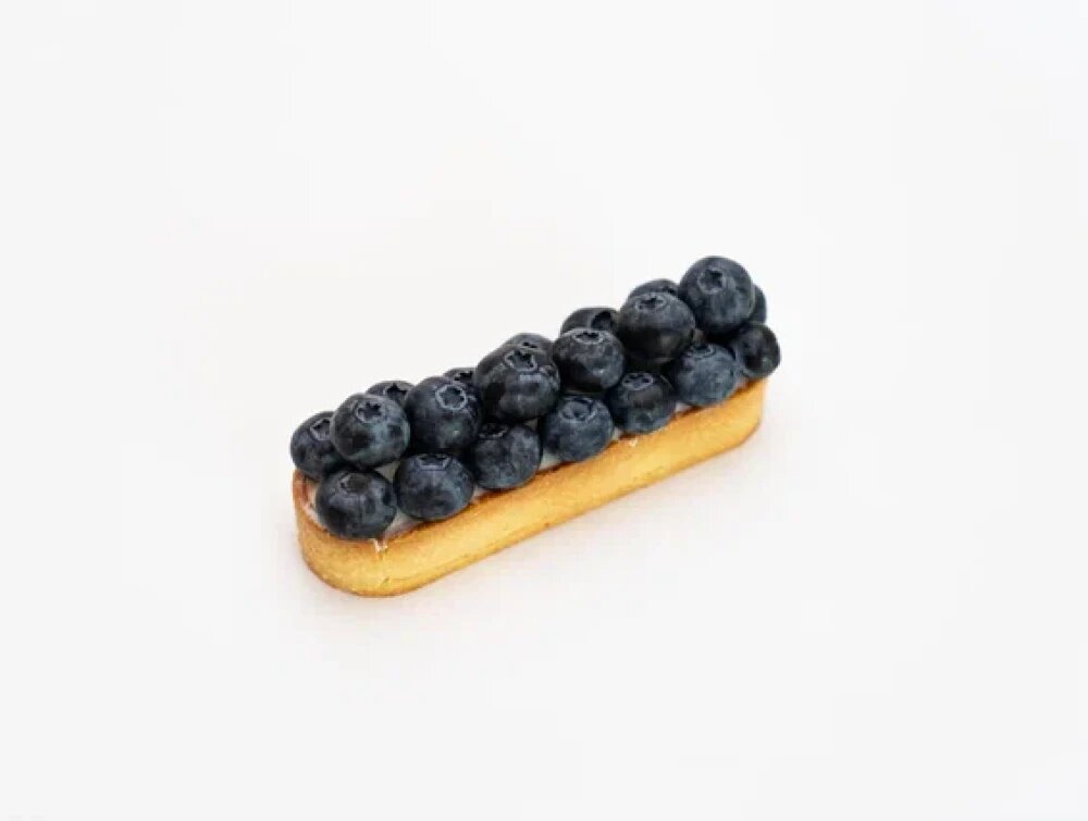 Хрустящая тарталетка из песочного теста с ванильным заварным кремом Англес и сладким чиз-кремом.Украшается свежей сочной голубикой