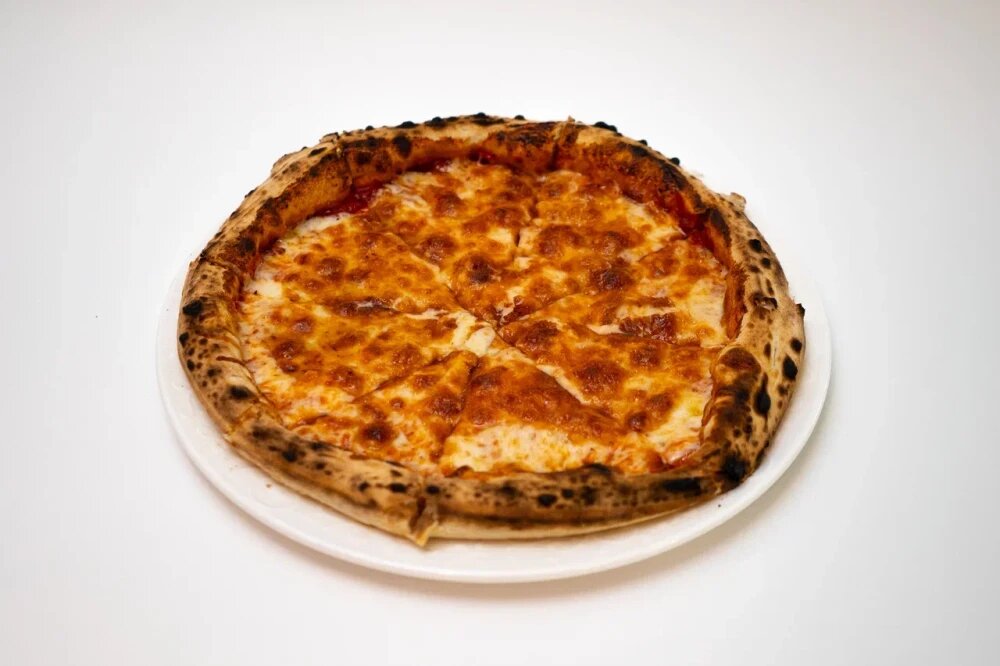 Неополитанская пицца из тонкого теста, томатного соуса и свежей моцареллы