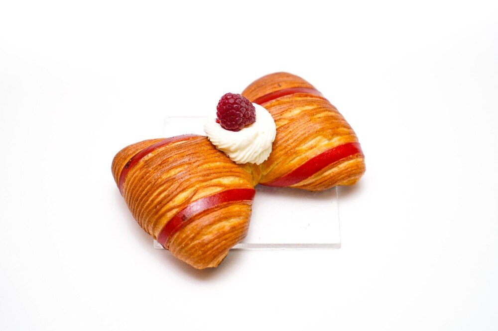 Французская слойка с малиновым джемом, сладким муссом из сливочного заварного крема Патисьер и свежей малиной